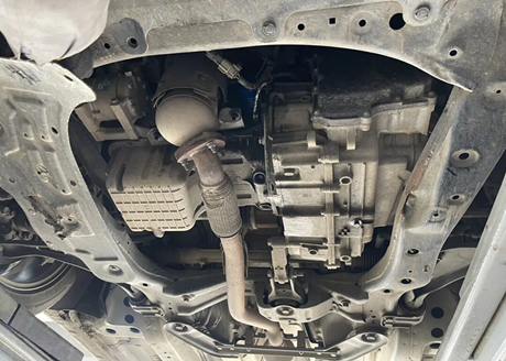 Une Chevrolet Cruze, une 320 Édition Enjoyment Toit ouvrant automatique de 2021, est arrivée à l'atelier. Produite en octobre 2020, elle a parcouru plus de 60 000 kilomètres en un peu plus de cinq ans. Le but de cette visite est la pose d'une protection de soubassement moteur.