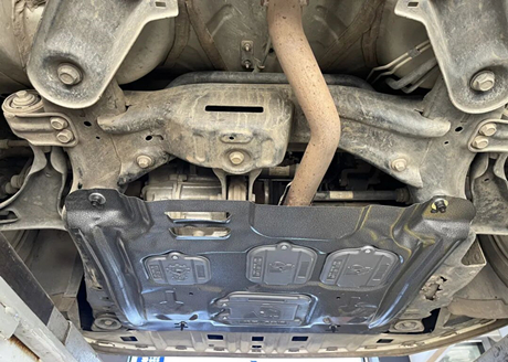 Pourquoi la voiture a-t-elle été utilisée si longtemps et que je me souvienne seulement maintenant d'installer une plaque de protection ? Le propriétaire a expliqué qu'il n'avait pas fait attention au châssis auparavant. Ces deux dernières années, le châssis s'est constamment rayé. L'année dernière, les rayures ont atteint la boîte de vitesses, la manquant de peu. Récemment, le berceau moteur a également été rayé et déformé. Il estime qu'il serait préférable d'installer une plaque de protection.