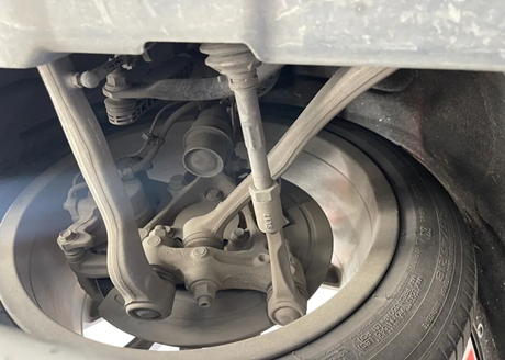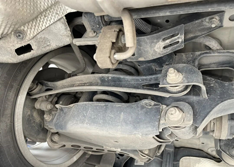 Les vis fixant le bras inférieur et la bielle supérieure au sous-châssis sont des vis excentriques permettant de régler le pincement avant et l'inclinaison de la suspension arrière. Après inspection, tous les composants de la suspension sont en bon état.