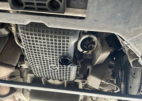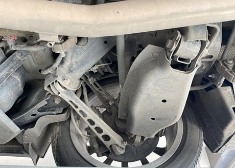 Vérifiez les composants de la suspension avant, notamment le manchon en caoutchouc et la rotule : aucun problème. Le carter d'huile moteur est en plastique. Bien qu'il ne comporte pas de plaque de protection inférieure, une traverse renforcée le protège. Le carter d'huile est dissimulé entre le sous-châssis et la traverse pour une meilleure protection et une vidange aisée de l'huile. L'élément filtrant est placé à côté pour faciliter son remplacement.