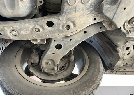 Le berceau est de type châssis complet, avec une suspension avant indépendante de type MacPherson. Le bras de suspension inférieur est constitué d'une double tôle d'acier emboutie et soudée, et sa rotule est démontable séparément. L'inspection n'a révélé aucun problème majeur.