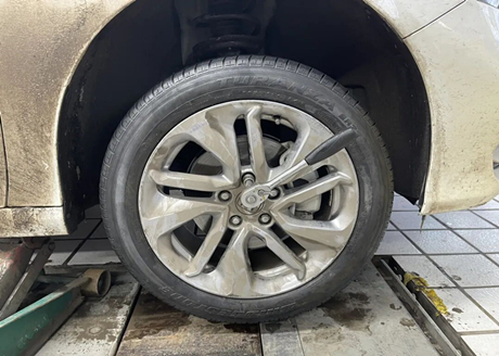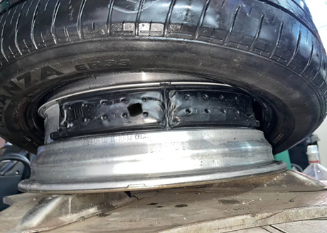 Le conducteur a expliqué qu'il s'agissait d'un comportement typique de conduite avec des pneus complètement dégonflés. Si l'on continue de rouler, de nombreux résidus de caoutchouc noir resteront à l'intérieur des pneus ; si l'on continue de rouler, le flanc du pneu sera écrasé et détaché de la bande de roulement, et la jante entrera en contact direct avec le sol. Il faudra alors remplacer non seulement le pneu, mais aussi la jante, ce qui, dans les cas les plus graves, pourrait endommager la suspension.