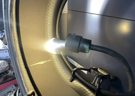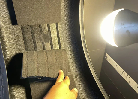 Les clous ne sont pas gros, et le maître a dit que des patchs de réparation à froid classiques suffisent. Si les clous sont plus épais, il faut des clous spéciaux, et le prix sera plus élevé. Comme le montre la figure ci-dessous, le patch est posé, puis une colle spéciale est pulvérisée à l'endroit où le coton insonorisant était collé pour fixer ce dernier.