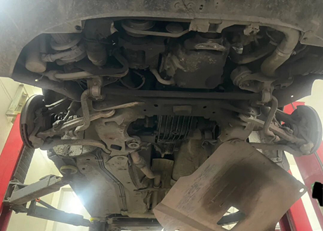 Au départ, le mécanicien pensait à un problème de cage à billes dans le demi-arbre, mais après inspection, il a confirmé que ce n'était pas le cas et qu'il s'agissait probablement d'un problème de boîte de vitesses. Il a ensuite soulevé la Passat pour examiner l'état du châssis.